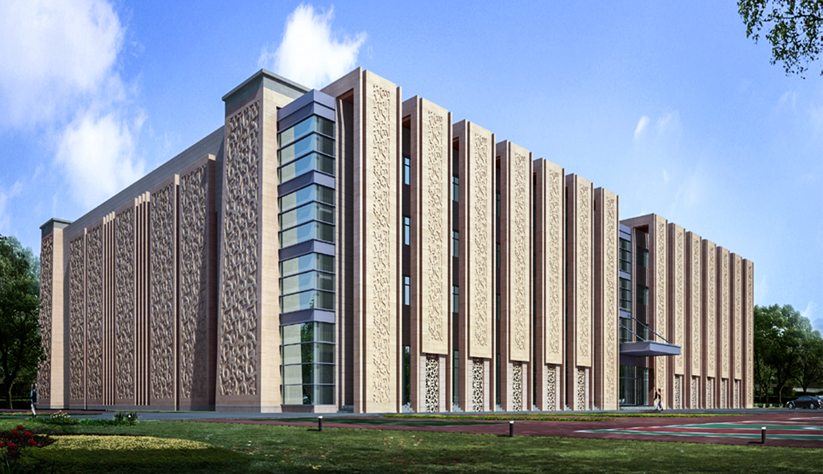 民俗造型、契丹浮雕、當(dāng)?shù)厥?,設(shè)計(jì)源于當(dāng)?shù)匚幕瑲w于時(shí)代潮流,簡(jiǎn)潔的造型,龐大的體量使其成為莫旗的城市標(biāo)志性建筑。