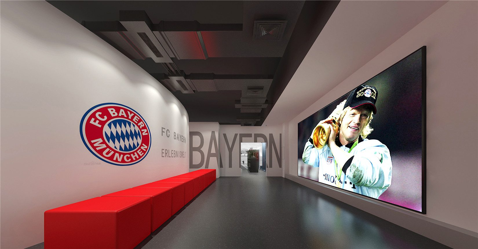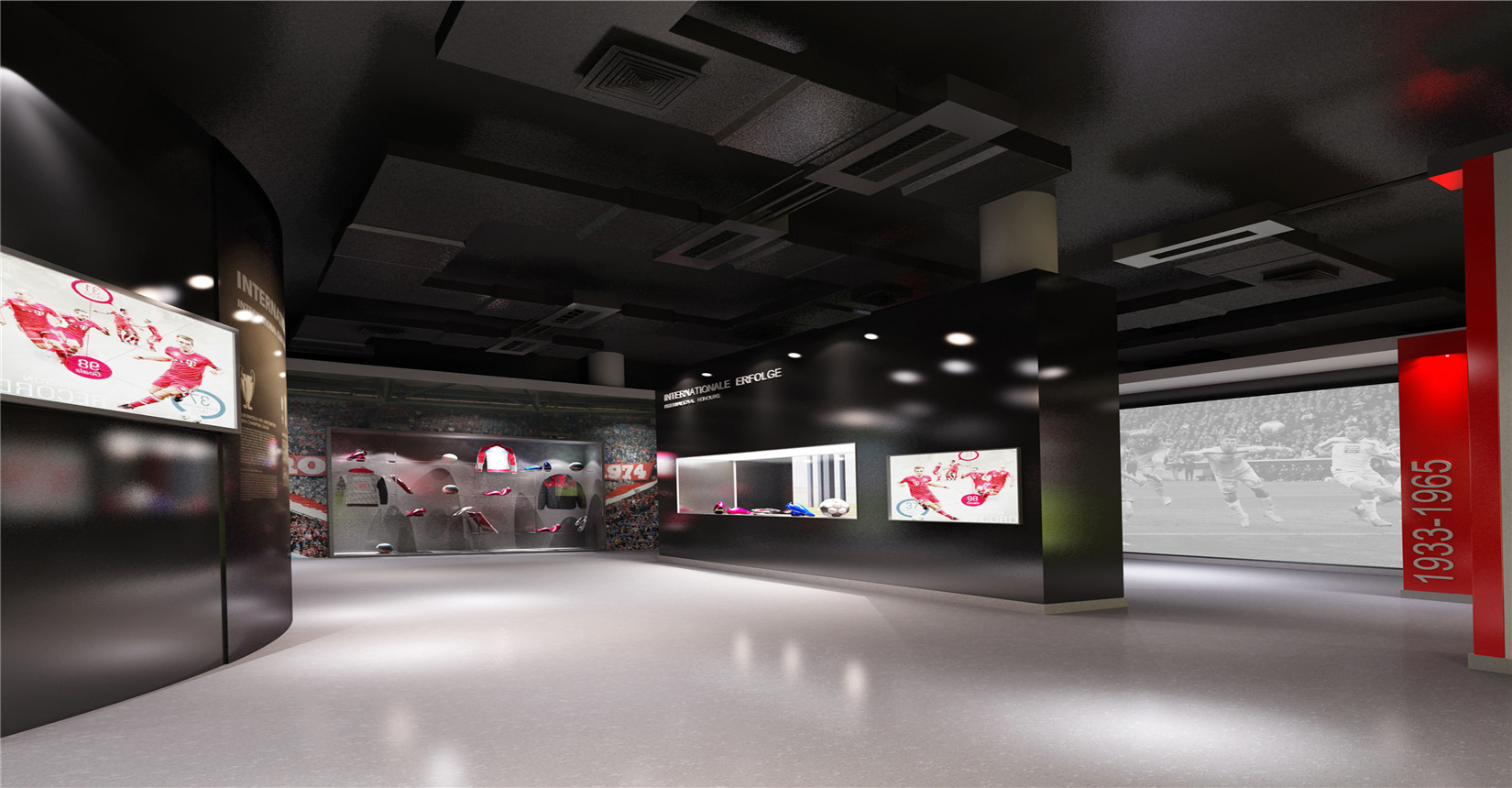 本次設(shè)計(jì)方案運(yùn)用后現(xiàn)代主義風(fēng)格的設(shè)計(jì)手法來(lái)展現(xiàn)中德兩國(guó)足球運(yùn)動(dòng)的歷史及發(fā)展。迎合當(dāng)前環(huán)境下中德兩國(guó)在足球產(chǎn)業(yè)方面進(jìn)行的交流與合作,是中德體育促進(jìn)足球培訓(xùn)、商務(wù)推廣的窗口平臺(tái),向人們展示足球精神的人文內(nèi)涵與魅力。